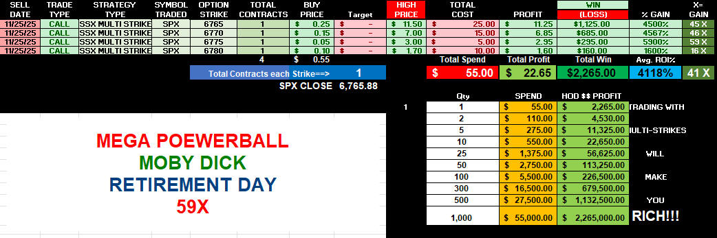 Another 100 point day after testing 6666.66 and taking out the entire sell off day SGB zone and closing gaps ahead of the Thanks-for-giving holiday.