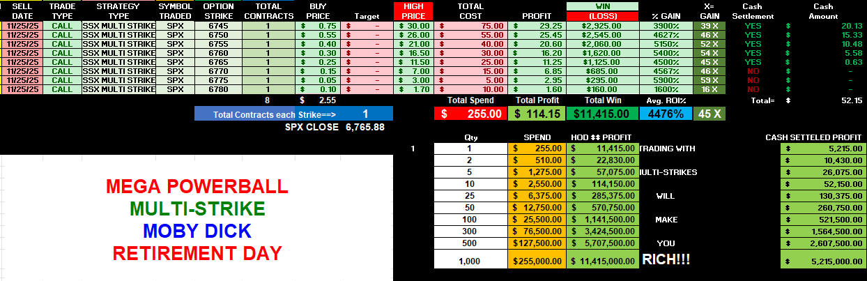 Will the SPX hit 6900 tomrorow or will it take Friday. Either way that is the target for CALL strikes and 6700 for PUTS but overweighting CALLS is the move unless we get a gap-n-crap on the 15-minute ORB tomorrow. Then I will be looking for a test and/or close around 6750.