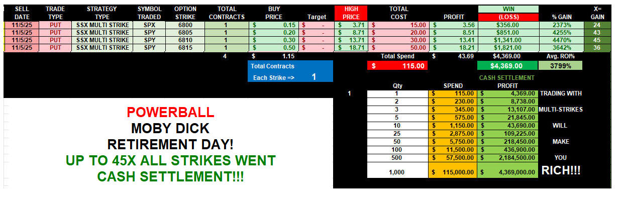 Today, the PUTS went Powerball Moby Dick with CASH SETTLEMENT!