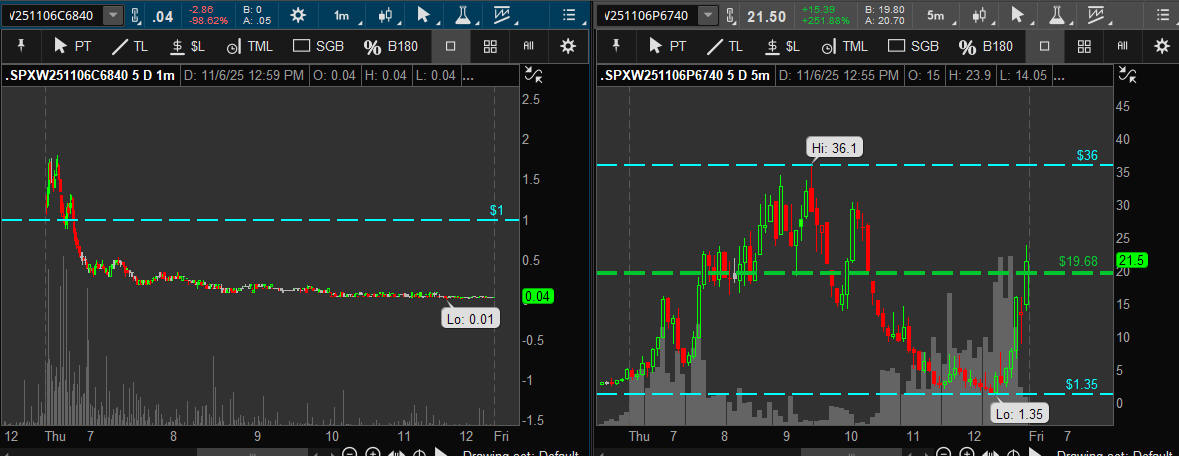 Today, the puts were another Moby Dick day with cash settlement; however, you had to be in just before 12:30PM PST to get lowest entry price.