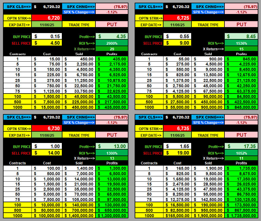 $1.00 Opening Formula Strike Ranges: CALLS 6840 / PUTS 6740