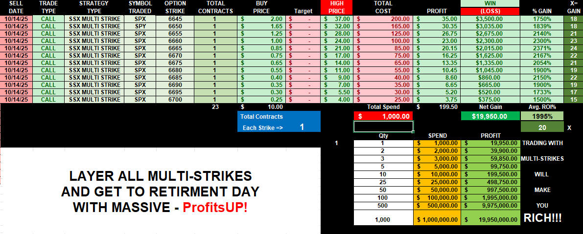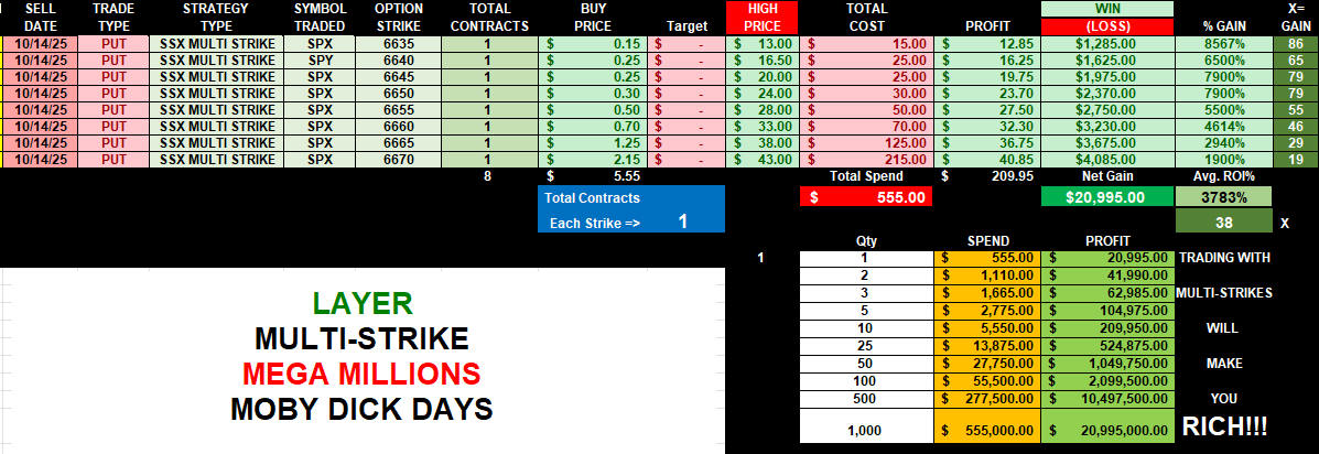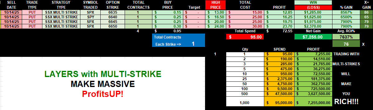 SUPER SPY-SPX $1 OPENING FORMULA IS SIMPLY AMAZING!! ALL YOU HAVE TO DO IS START WITH PROCESS WITH 1 CONTRACT FOR $100 AND BUILD YOUR FORTUNE WITH COMPOUNDING, LAYERS AND MULTI-STRIKES THEN YOU HAVE THE ABILITY TO DoubleUP! FLIP TRADES AND CATCH DAYS LIKE THIS ONE!!!