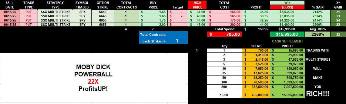 DoubleUP! Moby Dick POWERBALL day with PUTS