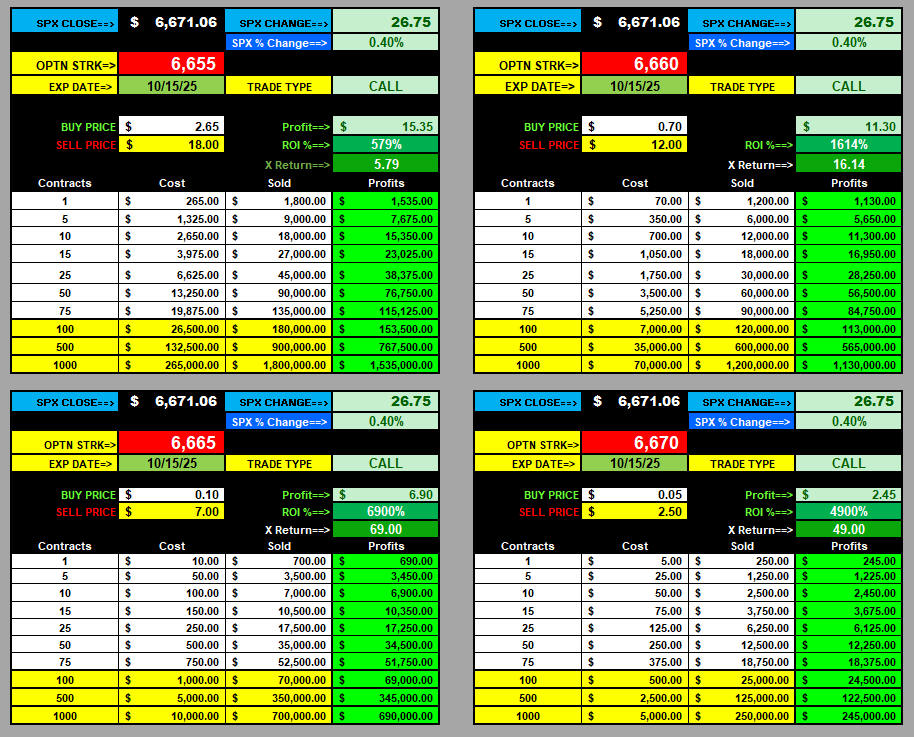 $1.00 Opening Formula Strike Ranges: CALLS 6740 / PUTS 6640