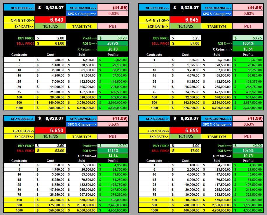 $1.00 Opening Formula Strike Ranges: CALLS 6740 / PUTS 6640