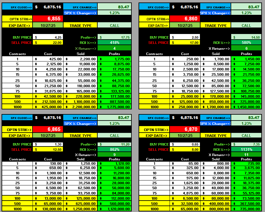 $1.00 Opening Formula Strike Ranges: CALLS 6895 / PUTS 6795