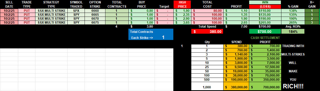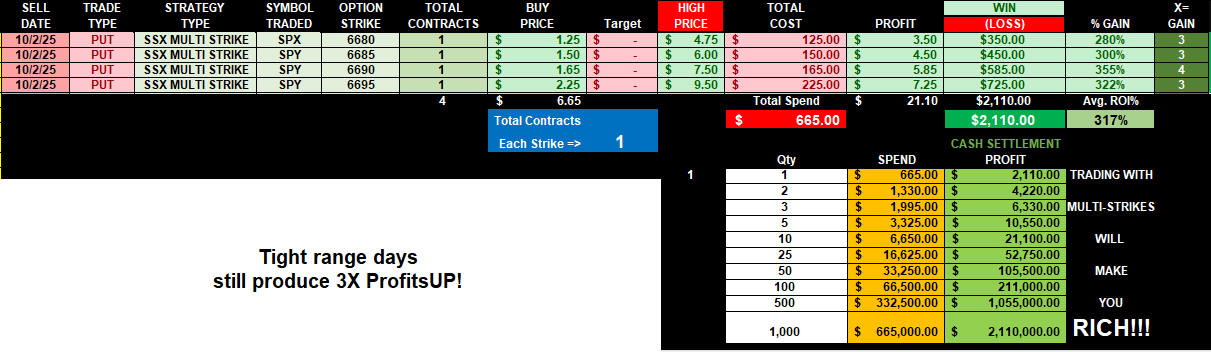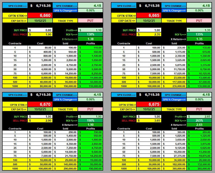 $1.00 Opening Formula Strike Ranges: CALLS 6780 / PUTS 6680