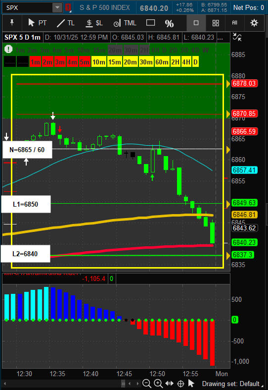 12:30 PM PST - Quant Pivot lines: Neutral = 6865 / 60 L1=6850 L2=6840 —