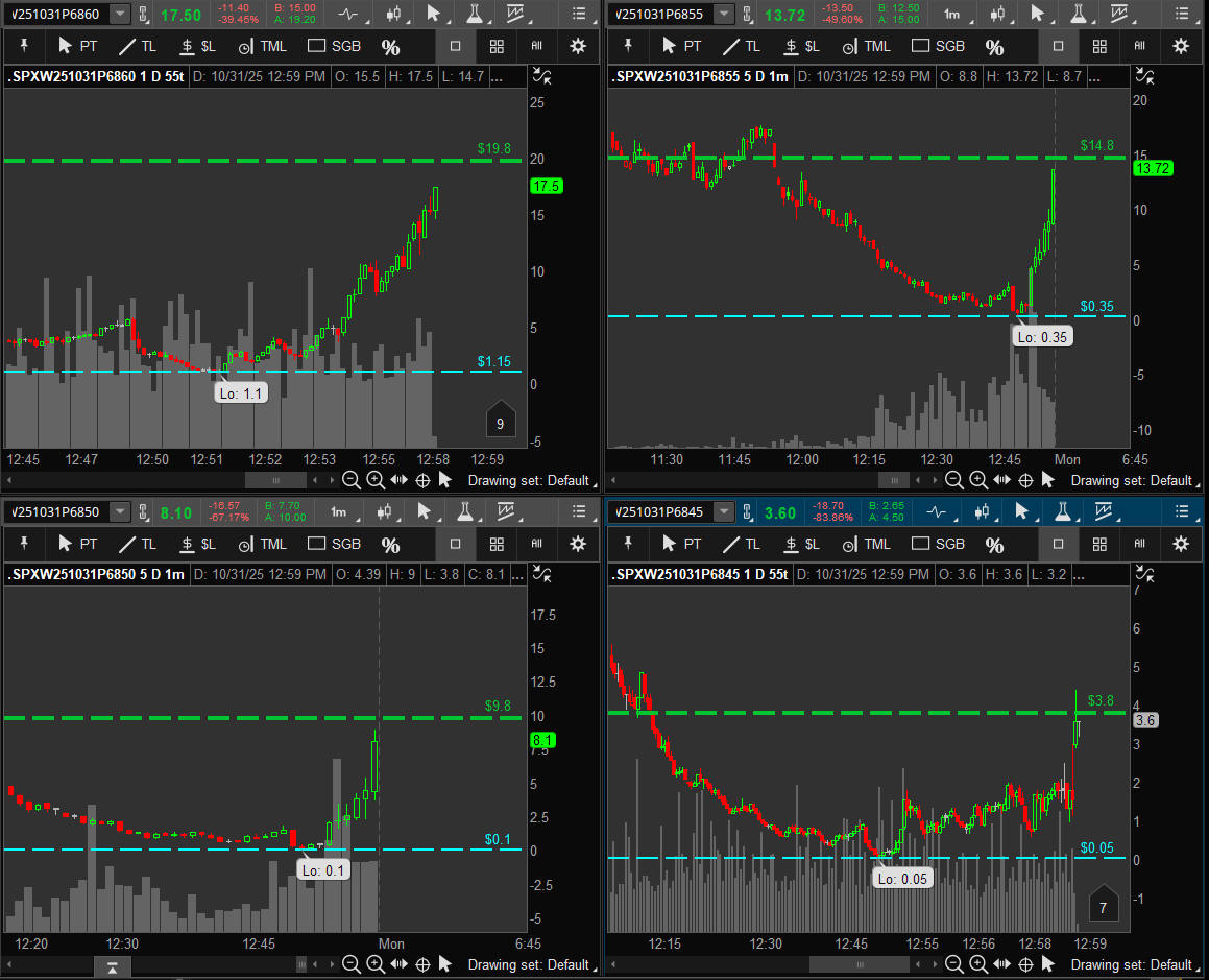 Crazy whipsaw day for Halloween trading and quarter end rebalancing. Puts at the open exploded in ProfitsUP! then switched to CALLS at lunch session for ROCKET ProfitsUP! then load the boat for EOD PUTS and GET RICH CASH SETTLEMENT!!!!