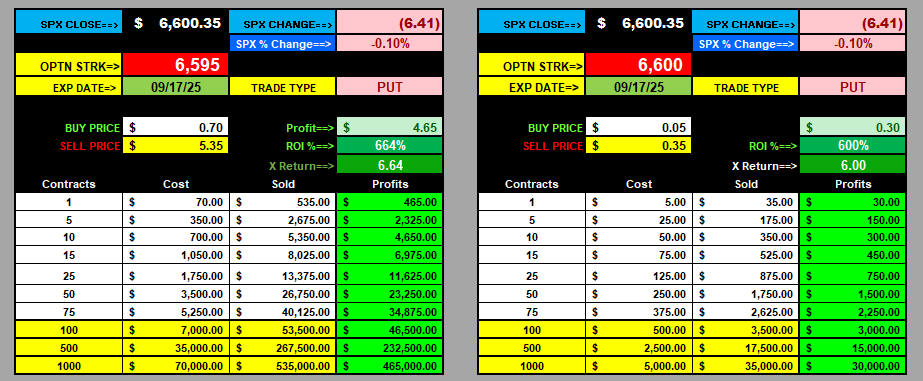 $1.00 Opening Formula Strike Ranges: CALLS 6655 / PUTS 6555