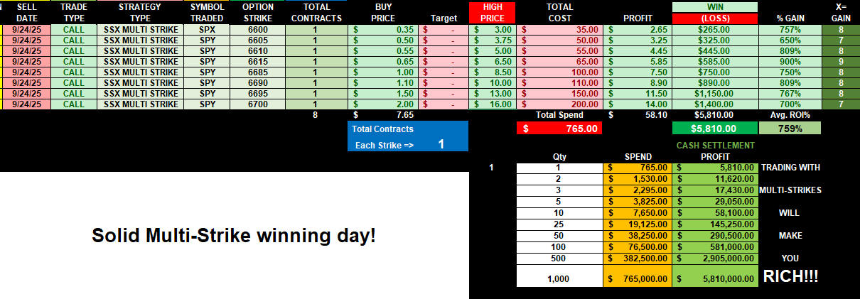 $1.00 Opening Formula Strike Ranges: CALLS 6720 / PUTS 6620