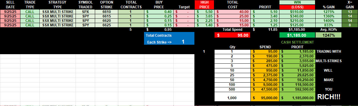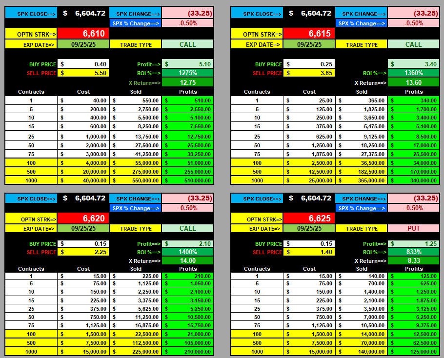 $1.00 Opening Formula Strike Ranges: CALLS 6660 / PUTS 6560