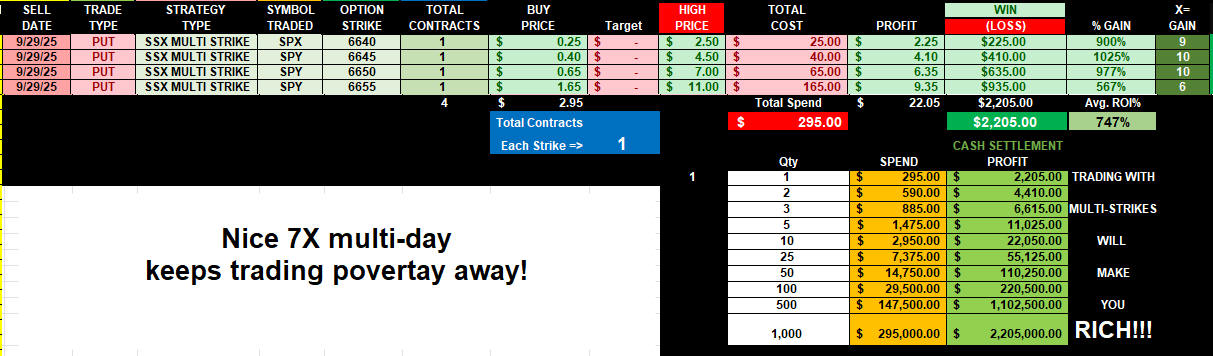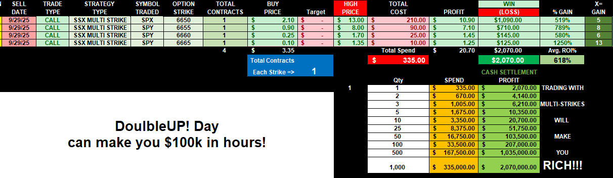 $1.00 Opening Formula Strike Ranges: CALLS 6710 / PUTS 6610