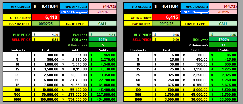 Other CALL strikes that fit the $1 Formula buy ranges: MOBY DICK POWERBALL DoubleUP! day $$$$$$$$$$