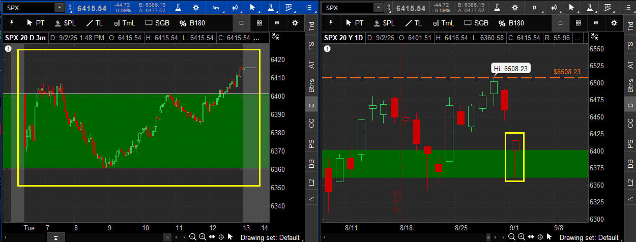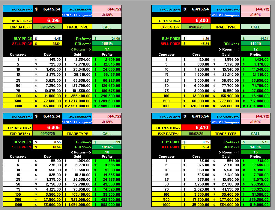 $1.00 Opening Formula Strike Ranges: CALLS 6450 / PUTS 6350