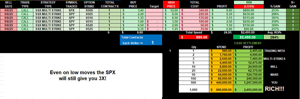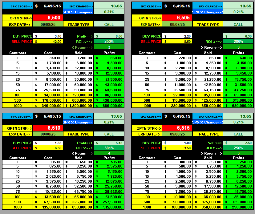 $1.00 Opening Formula Strike Ranges: CALLS 6550 / PUTS 6450