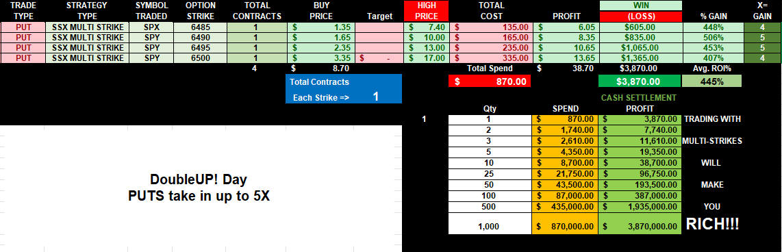 DoubleUP! Day on the PUT side strikes that fit the $1 Formula