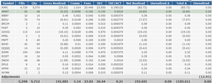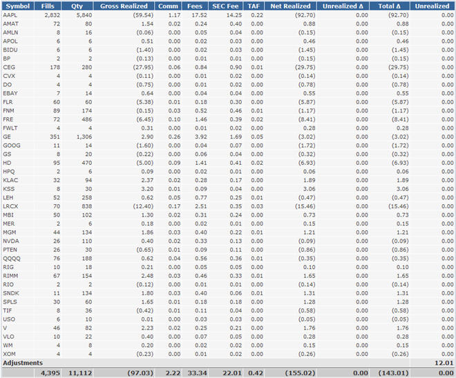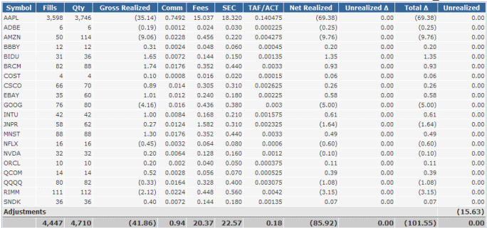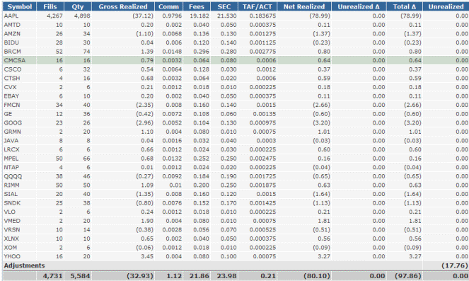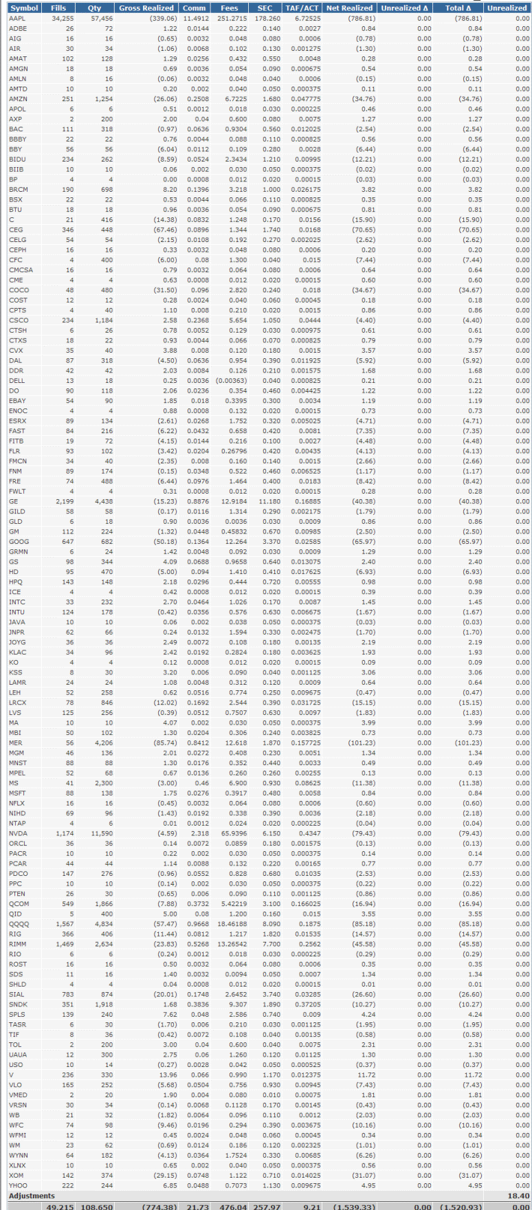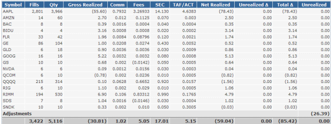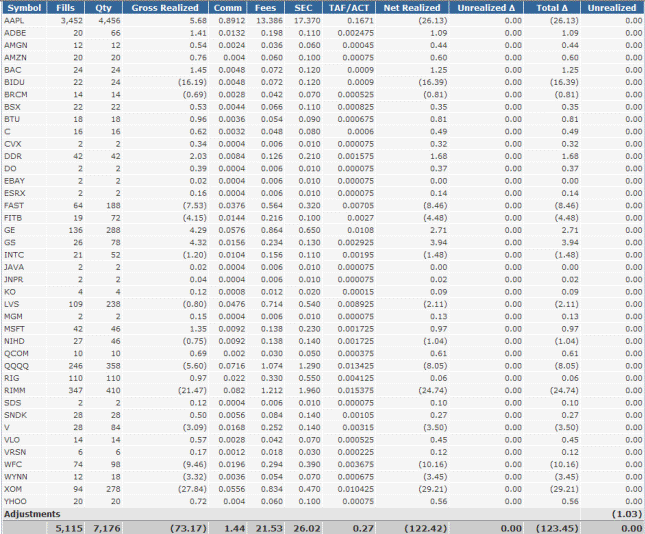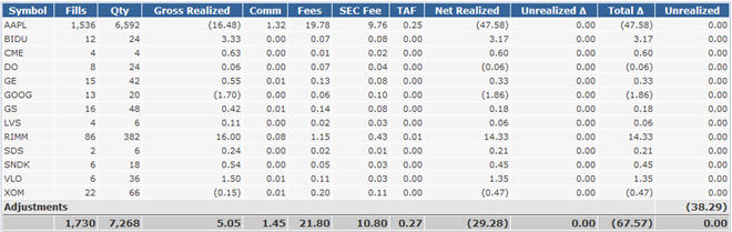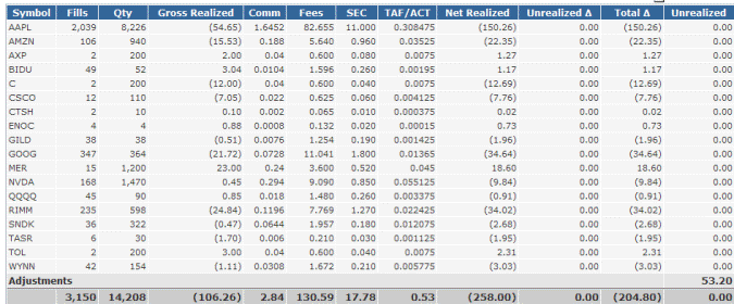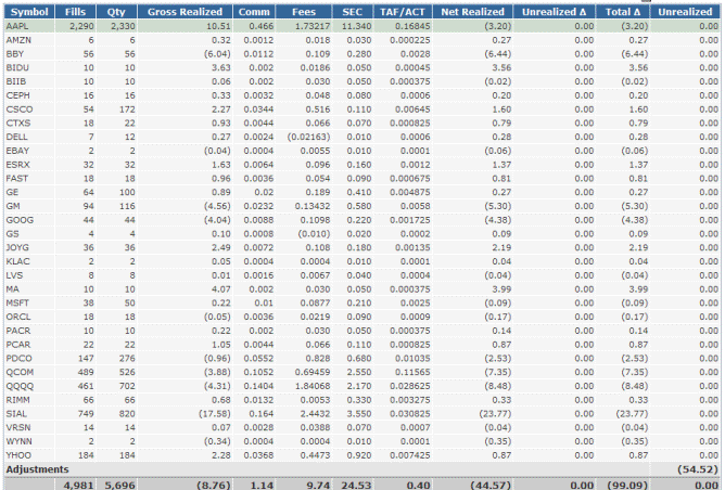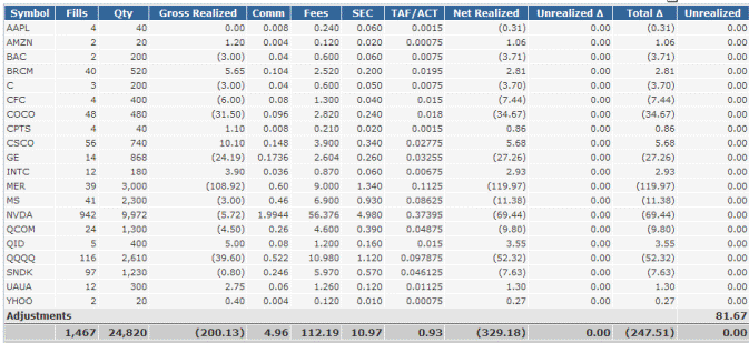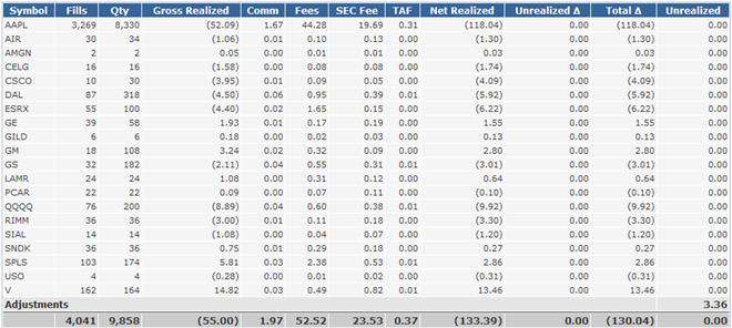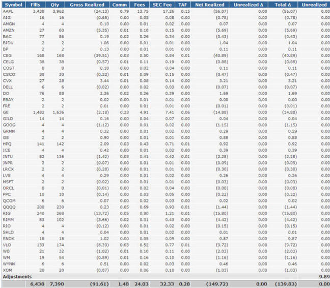 These are the results from day trades on select stocks.