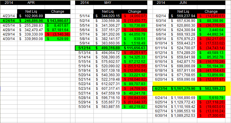 All Virtual Trades Daily Net Liq Stats