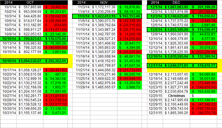 These are the actual daily results of the virtual trades I place, and unlike many advisory sites, I am not afraid to show you both sides of my trading coin!