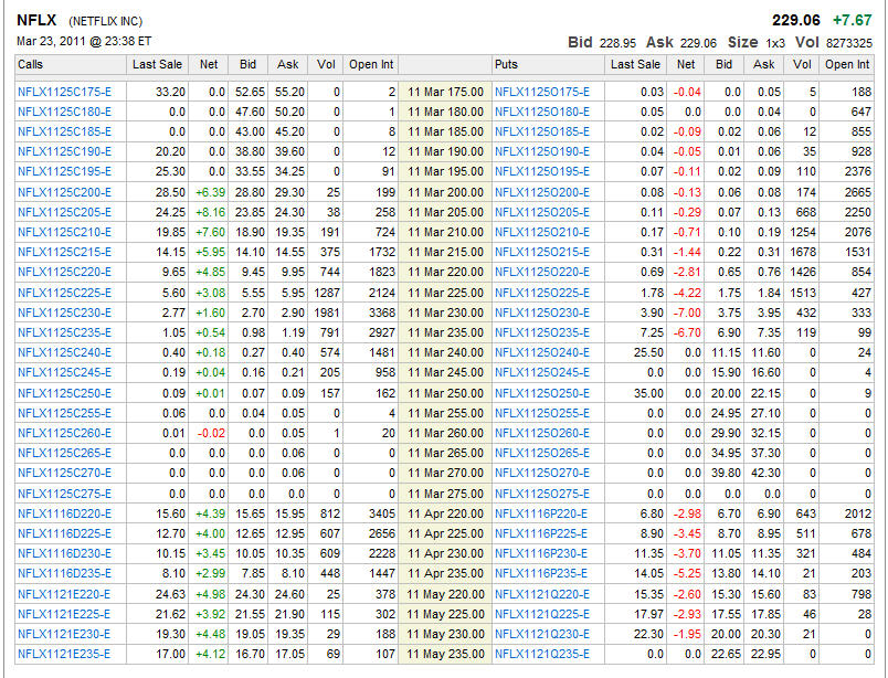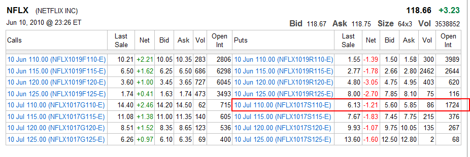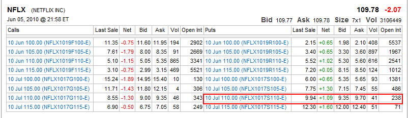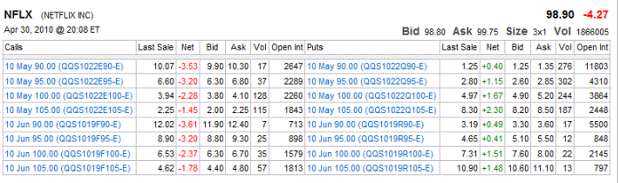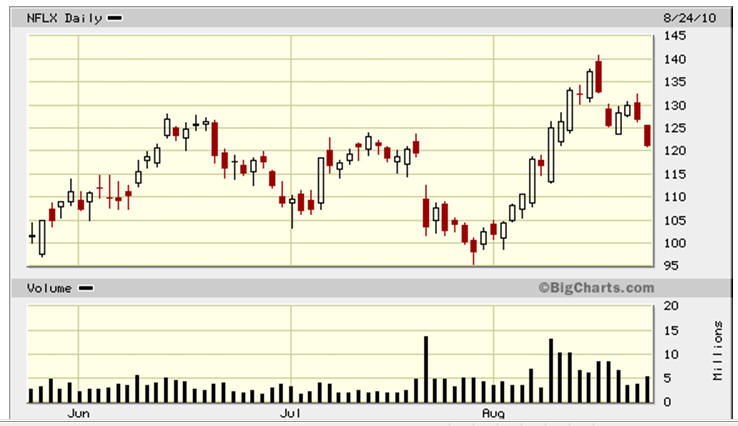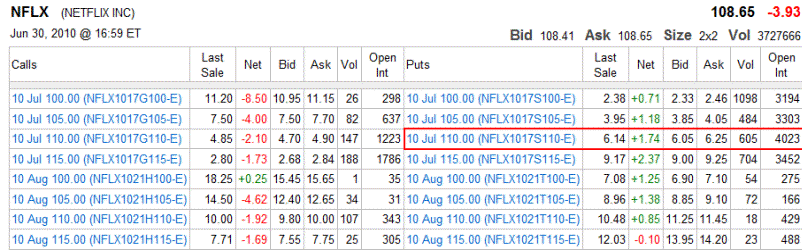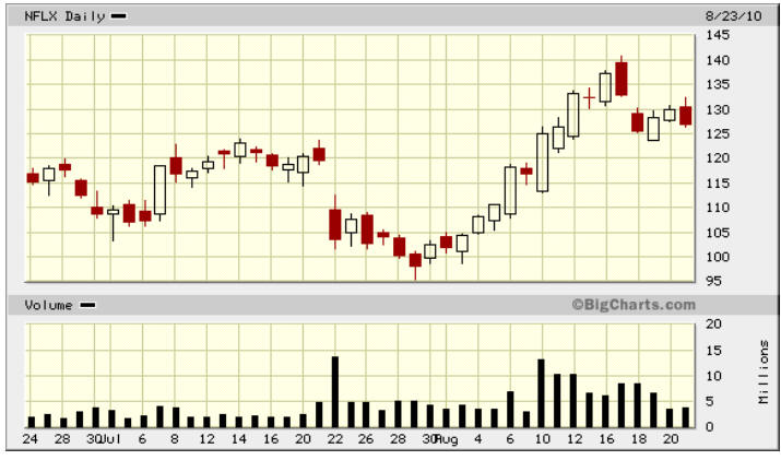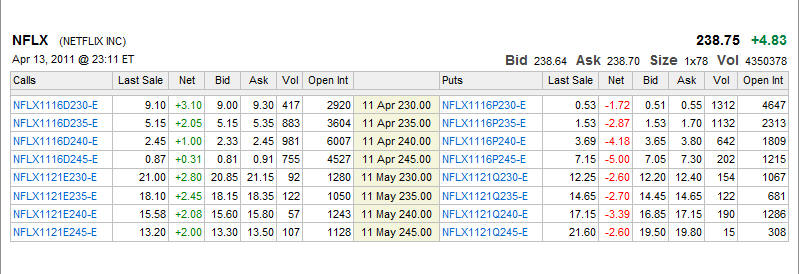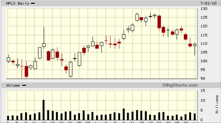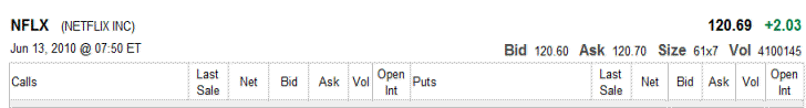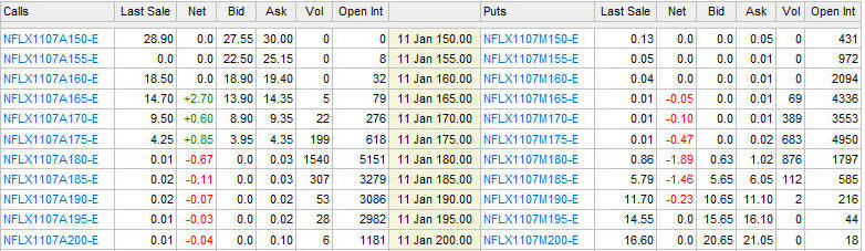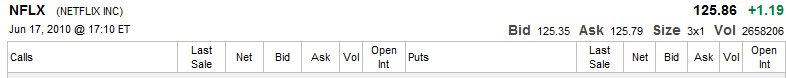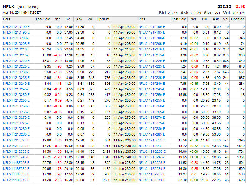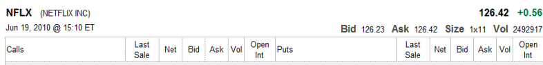 This has enraged customers but it will be short lived. The reason most are probably upset is because the choices for streaming are pretty slim—for now—but Netflix is cutting Billion dollar deals with content providers to up the release of top run movies for their on demand streaming. Netflix has also cut deals with TiVo and DVD/BlueRay manufacturers as well as game counsels to incorporate their streaming technologies with their machines. In the short-term, this can impact the stock price and today is reflective of that, but not that much since the price barely took a hit; however, if their revenue projections and subscriber base has taken a hit this last quarter, you can bet the put side will get a nice pay day next week.