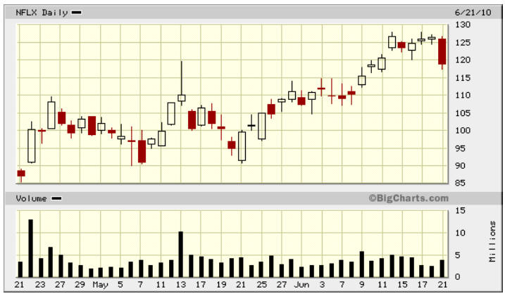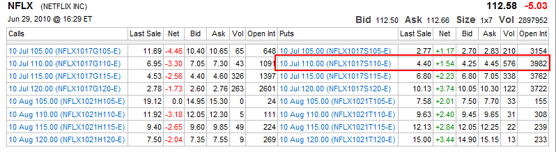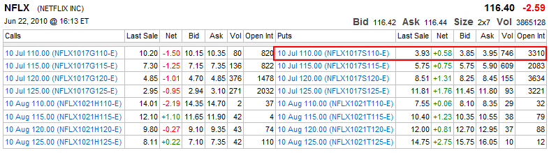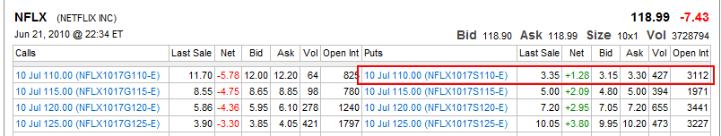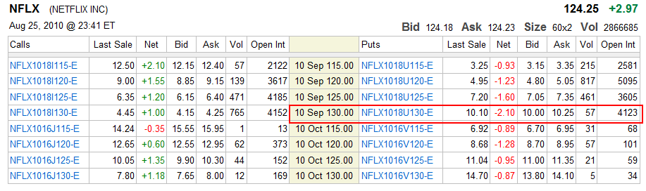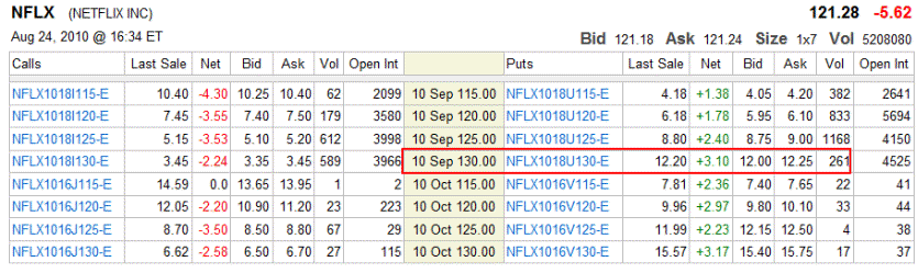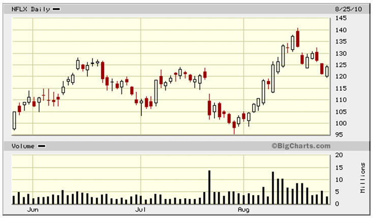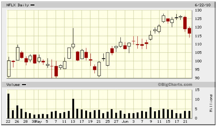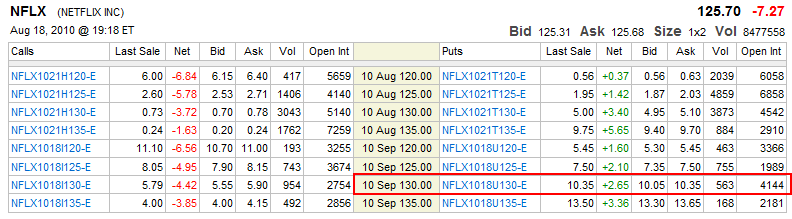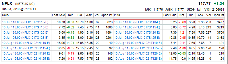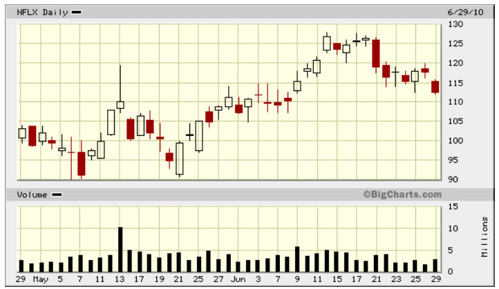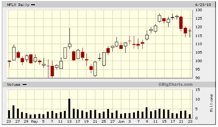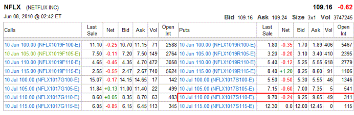 This has enraged customers but it will be short lived. The reason most are probably upset is because the choices for streaming are pretty slim—for now—but Netflix is cutting Billion dollar deals with content providers to up the release of top run movies for their on demand streaming. Netflix has also cut deals with TiVo and DVD/BlueRay manufacturers as well as game counsels to incorporate their streaming technologies with their machines. In the short-term, this can impact the stock price and today is reflective of that, but not that much since the price barely took a hit; however, if their revenue projections and subscriber base has taken a hit this last quarter, you can bet the put side will get a nice pay day next week.