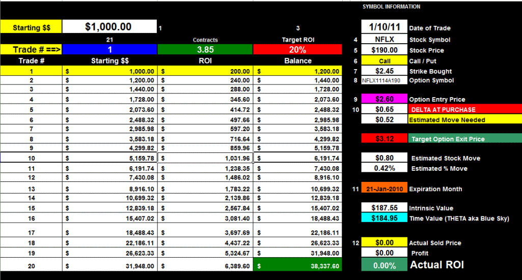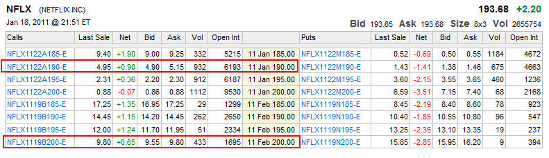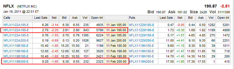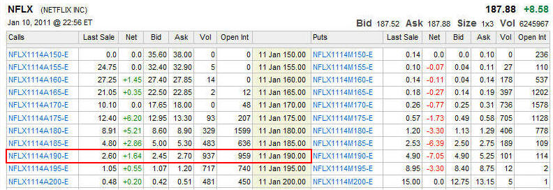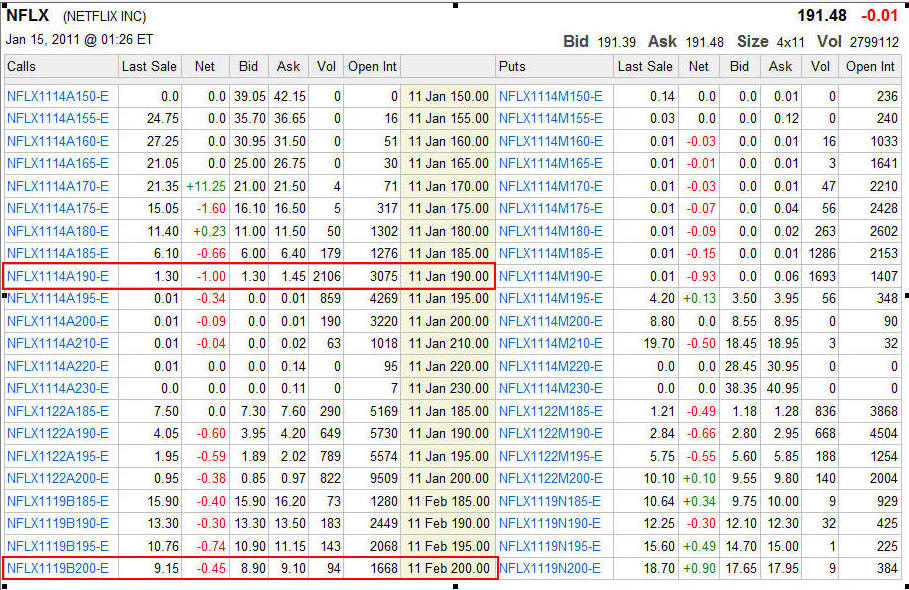 1/18/11 - NFLX is putting on some upside as we head into earnings season. AAPL knocked it out of the park today which bodes well for NFLX since Apple sold 1 million more iPads than projected. This means there are potentially tens of thousands more subscribers for NFLX on demand packages since the iPad can play streaming content on WIFI and/or G3. My compounder play is up over 100% to date and so we are off to a GREAT start for Jan. I will be putting on a straddle Lotto play just in case NFLX does not make the cut at earnings. And if they happen to miss, well, we should be in line to catch a lotta dough.
