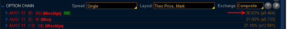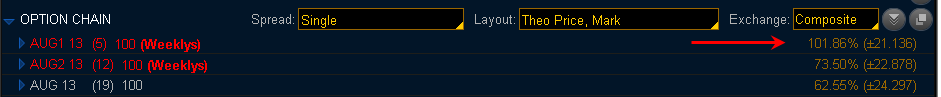 Here is a shot of LNKD on 7/26/13 and as you can see the IV% was on the extreme side.