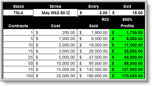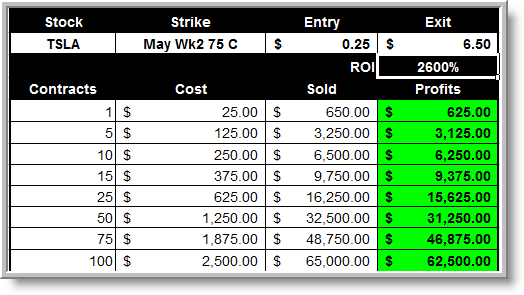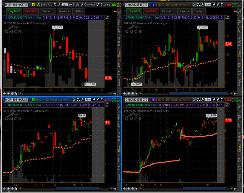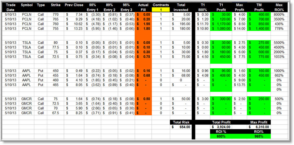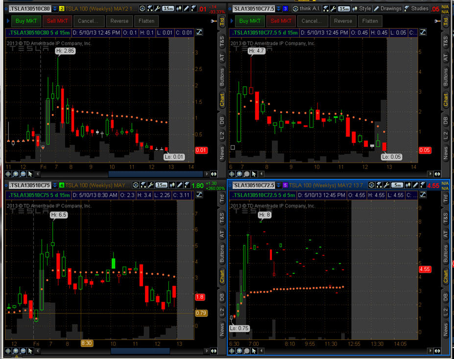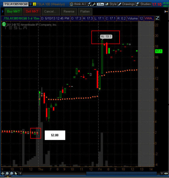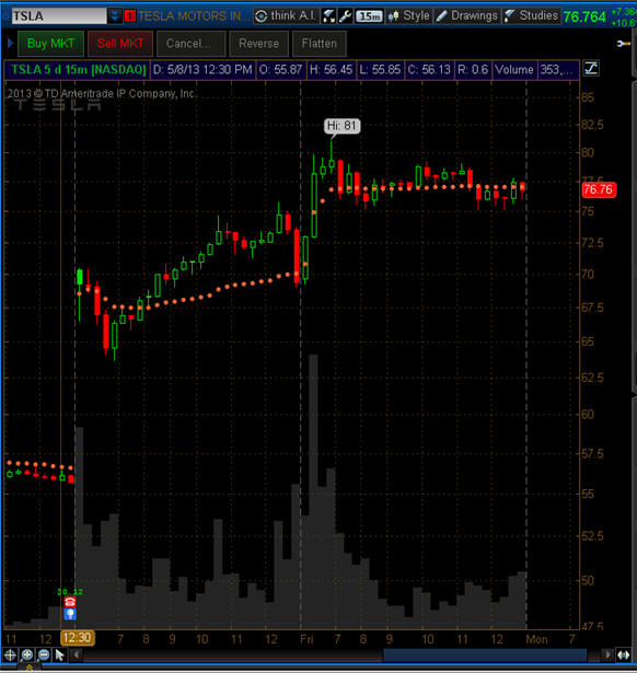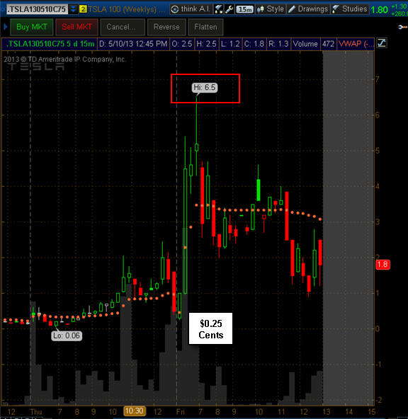 5/10/13 TSLA Blew out earnings Lotto Trade