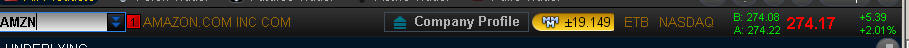 Another option is to sell 50% at the target ROI and see where the others take you during the trading day. NOTE: if you are out-of-the-money (OTM) them you need to take off 80% at the open. The way I predict if a stock can make a much larger move is with the implied volatility (IV%); and the TOS platform shows you the IV% to the right of the options expiring strike: AMZN