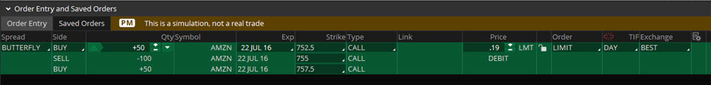 I am going to do a $755 Butterfly spread for this week for $0.19 debit and see if the stock can reach up to the Prime Day bubble high at 755.55.