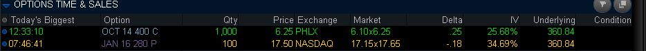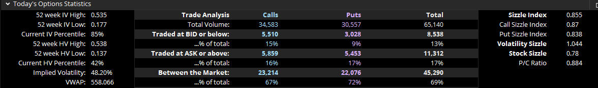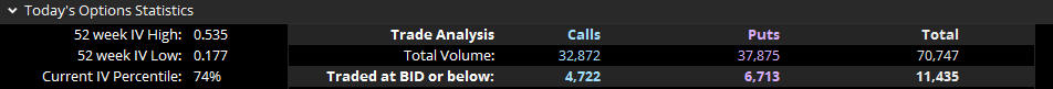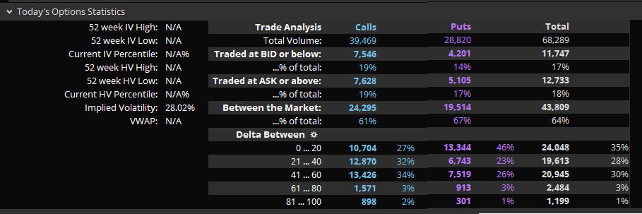 Calls are 94,558 vs. Puts at 63,690 and no big option bets yet but will update if I see anything.