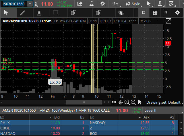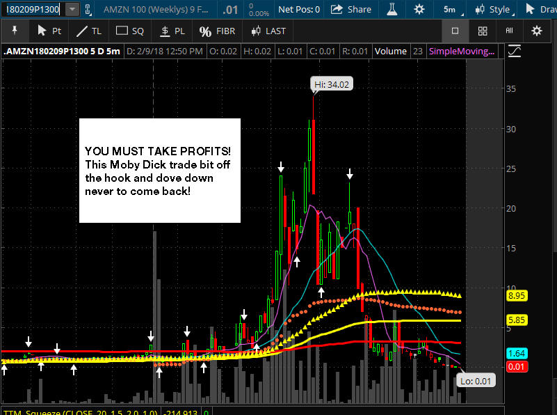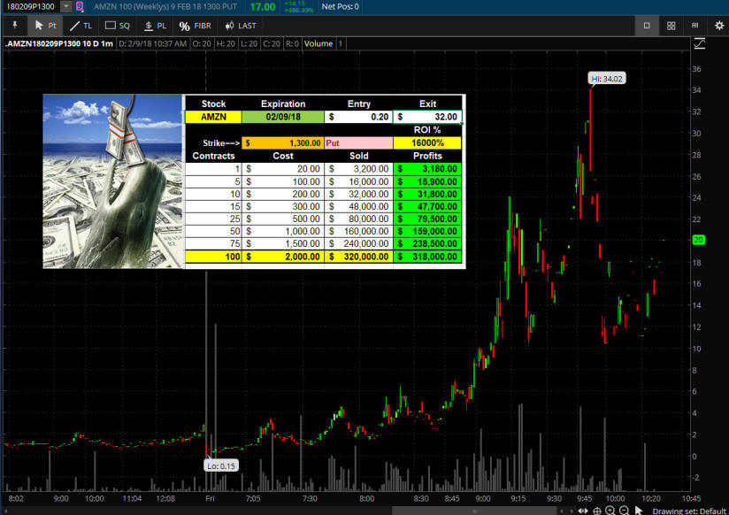 2/11/18 - AMZN has been on a whack-a-doodle roller coaster ride all week. If you were doing some WW fishing on Friday, maybe you caught the Moby Dick on the 1300 puts...WOW