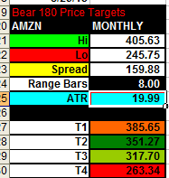 The quarterly chart had AMZN in a Bear 180 which tested T3 and bounced right off my T1 last week, so as long as the stock holds over the T1 line the bulls are in control.