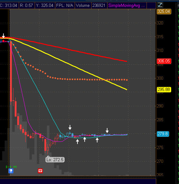 So that can put this stock up at $295 or down to $255. If you want to buy options, then buy strikes UNDER or ABOVE to give you the best chance of being in the money since they expire tomorrow. If you want speculate, then buy the $300 Calls or $250 Puts.
