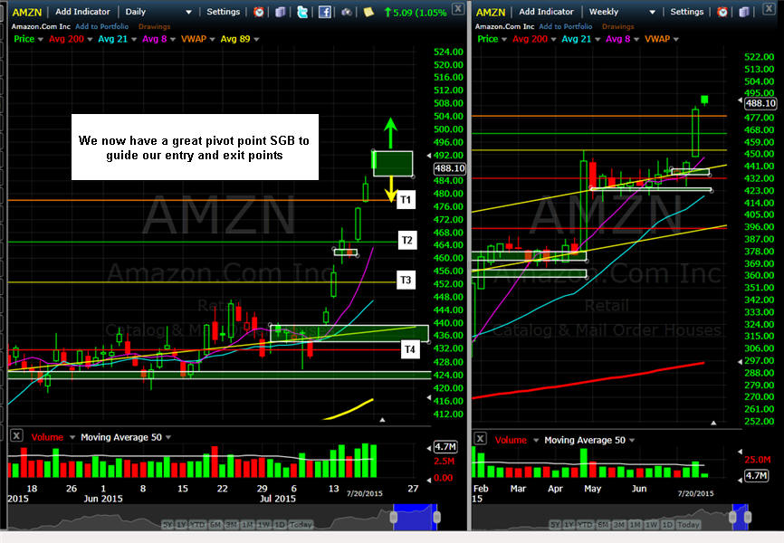 ====================================================================================================================== 5/10/15 - Looking like AMZN wants to rise again, but with two back to back SGB's we have to be ready to make a counter move.