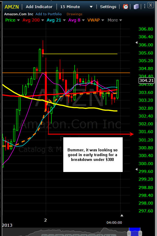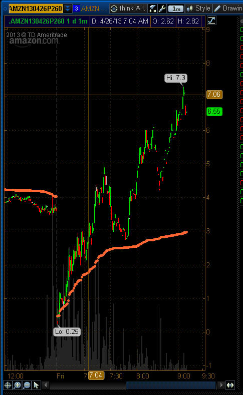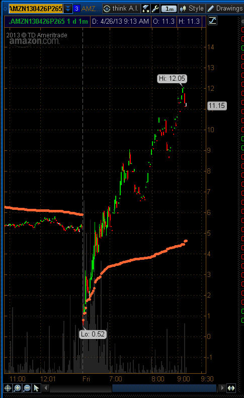 =========================================================================================== 4/26/13 - CHA-CHING!!!!!! Bagged another White Whale!!!!!!!!!!!!! AMZN Started to move up and then it was CRUSHED! All my put strikes BANKED!!!!