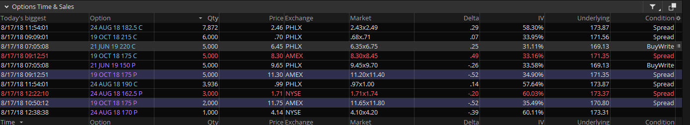 My plans are to buy some wild card 160 Puts which are 2x the MMM for this week; and then sell some ITM Bull Put Spreads at the 190/185; plus buy some 190 calls for next week.
