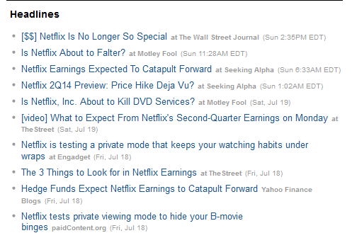 ================================================================================================ 4/11/13 - A new content deal with Hasbro, CEO announcement of 4B hours watched, more access to mobile devices and iPad etc. and the stock gets the kiss of death nod from Goldman Sachs...lol. All I know is when GS gets on board with upgrades it's time to SHORT, well, maybe not this time. I am on both sides of this stock and will continue to be as the volatility will be with us for some time to come. I find it to coincidental that when a stock starts to sell off suddenly, the analyst upgrades and news stories follow the next day to prop up the stock. It seems to me the timing is just too close and more often than not, the stock will give up all the new gains and then some more in a few days. Lets see if this reversal has some legs tomorrow, but we need to be watching how the stock reacts to the solid green bar in the next couple of trading sessions.