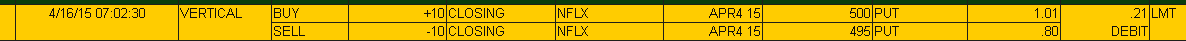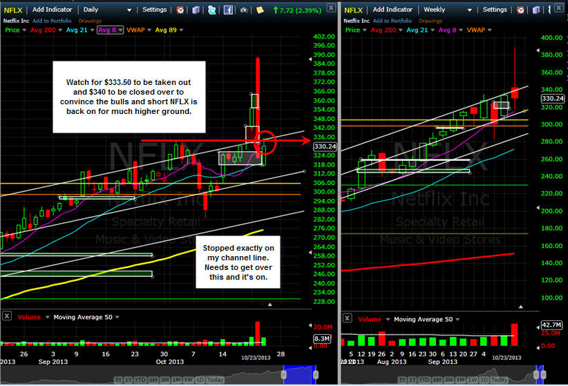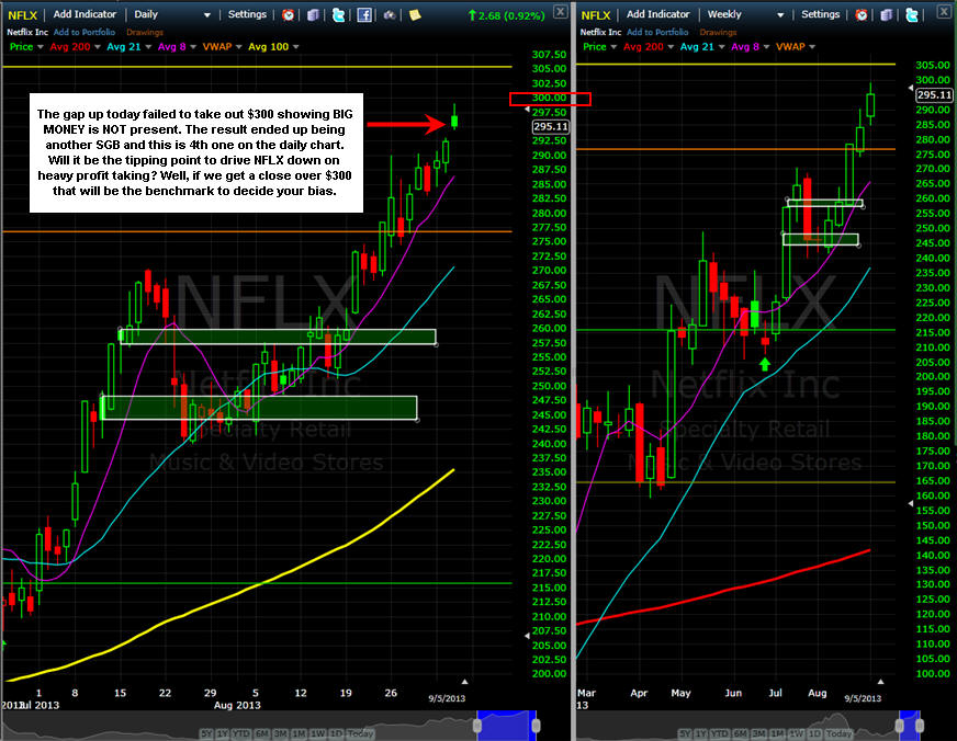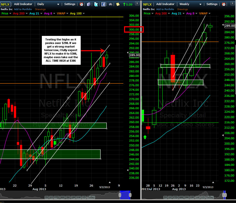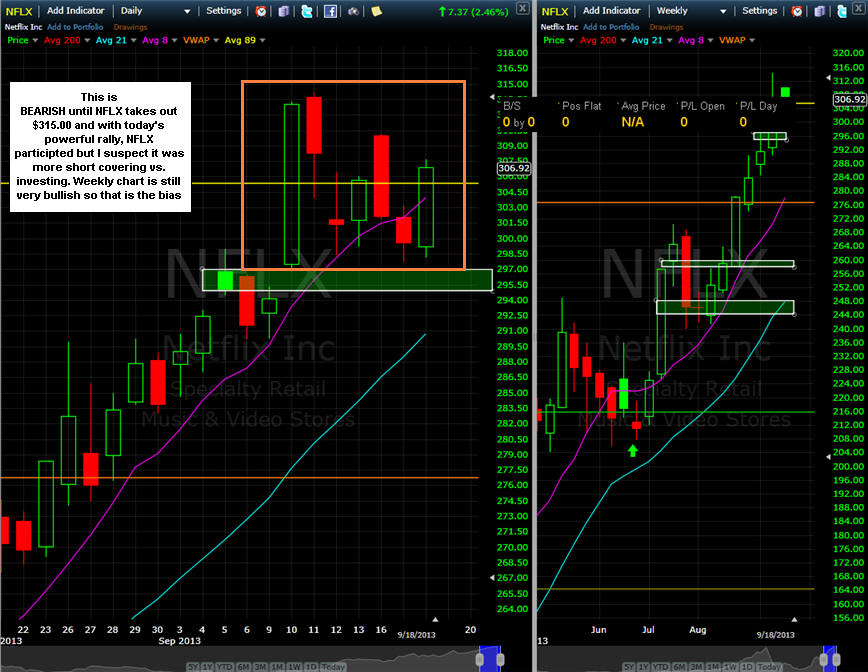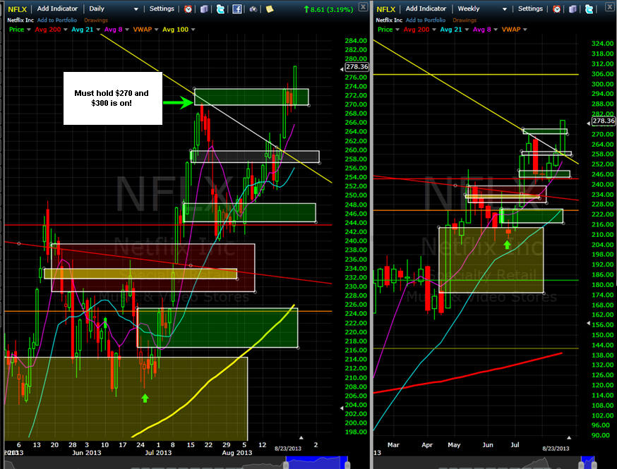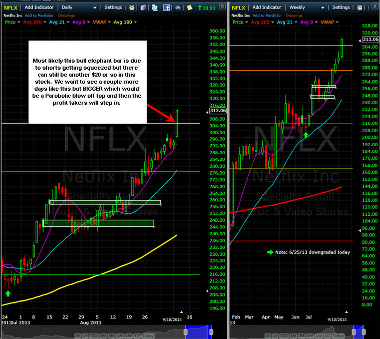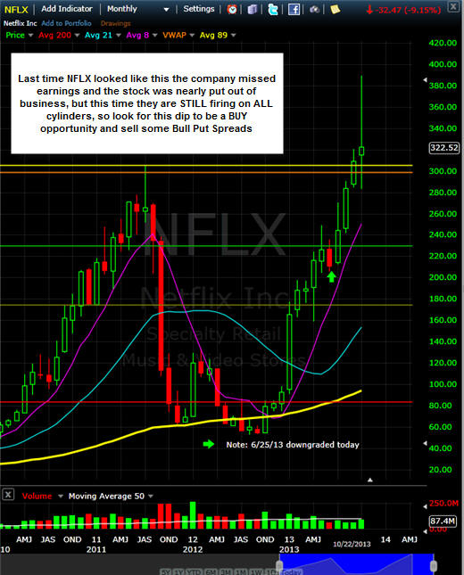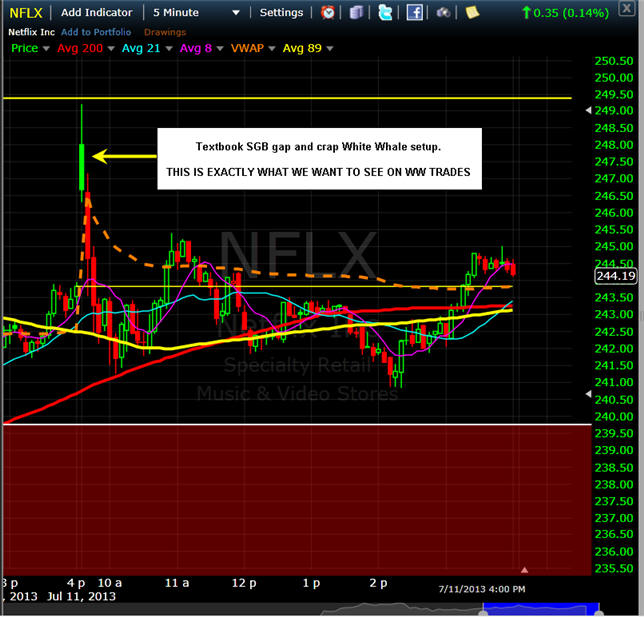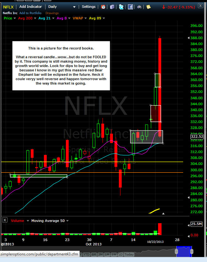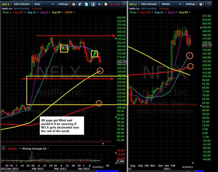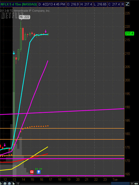 ======================================================================================== 4/22/13 - NFLX is up $10+ so far today, so I am putting in my White Whale orders for tomorrow.