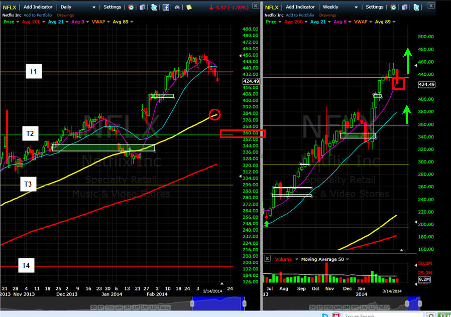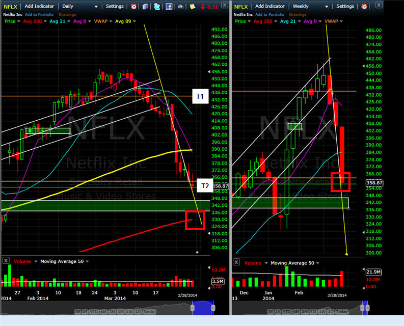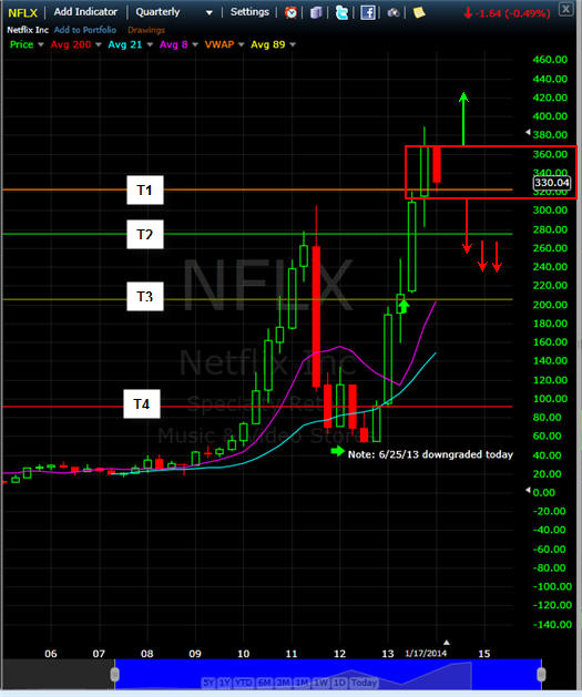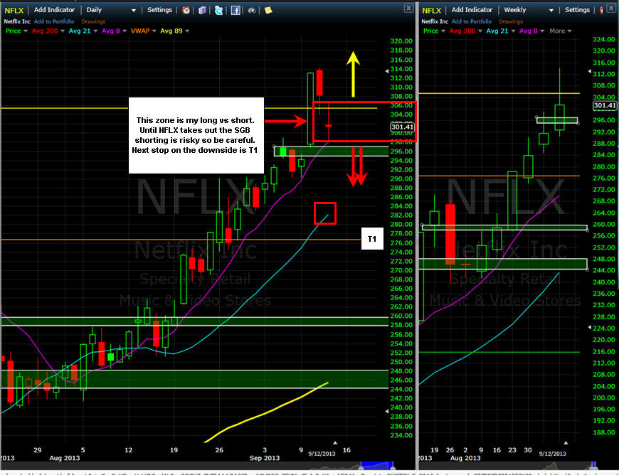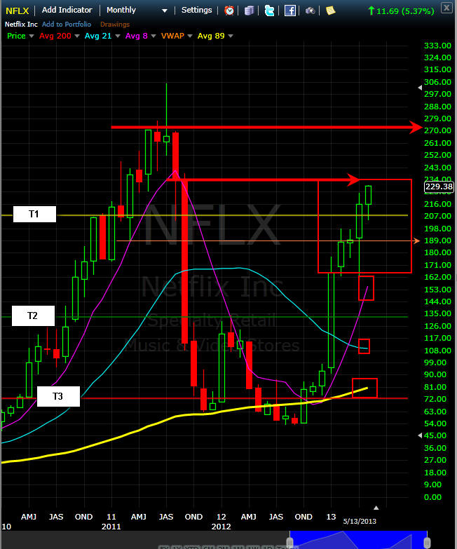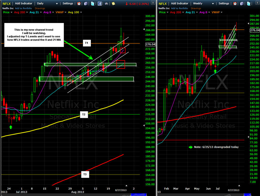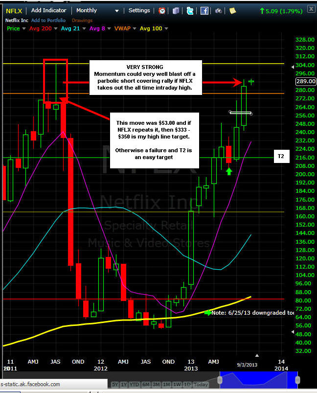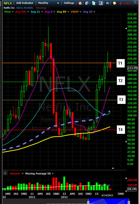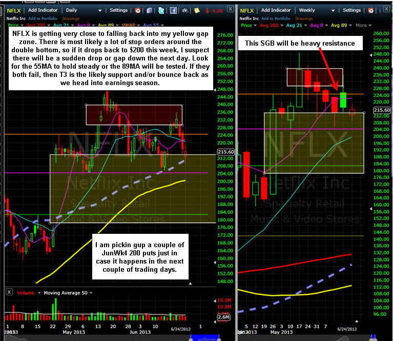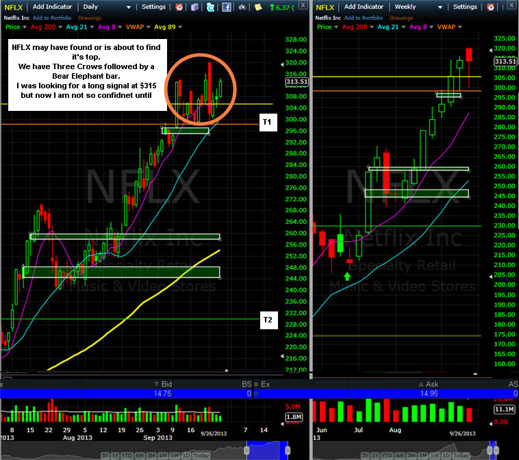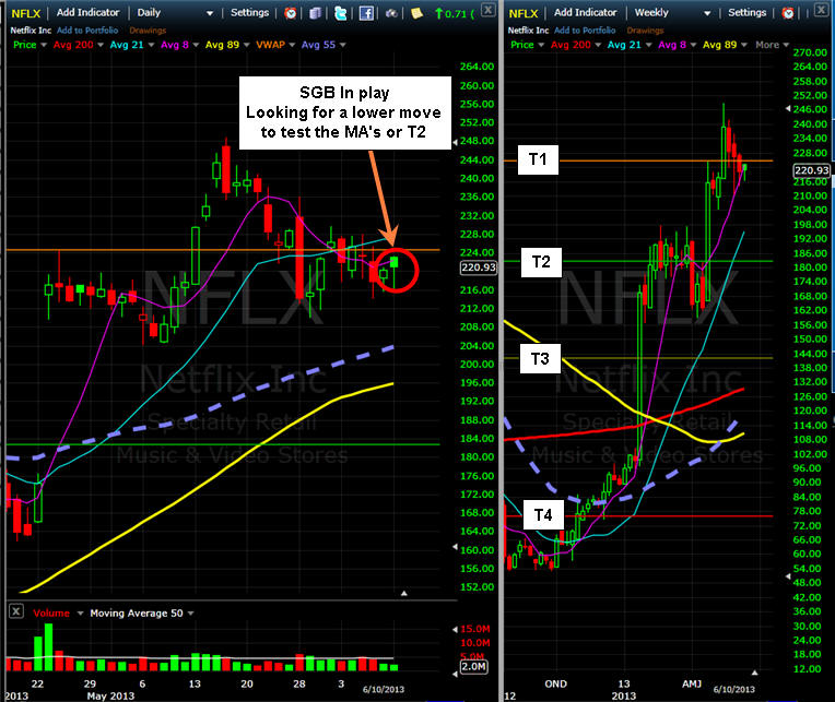 ===================================================================================== 5/28/13 - HOOKED ANOTHER ONE!!!!! Wow, perfect White Whale trade today on NFLX. We had the gap up and then the melt down all day! I am expecting NFLX to make a bounce but from the looks of things, we could see it fall to T4 before that happens.