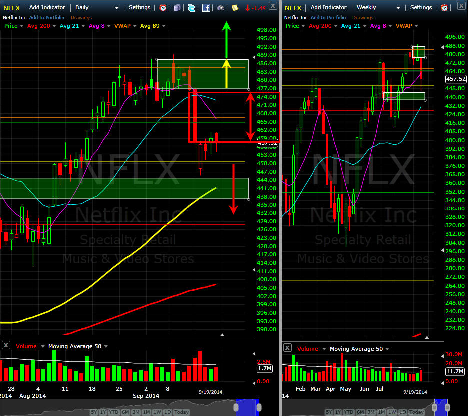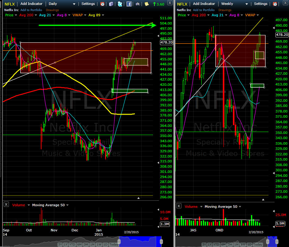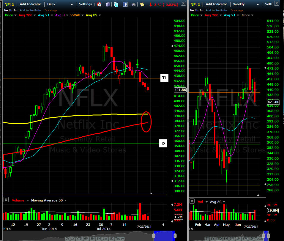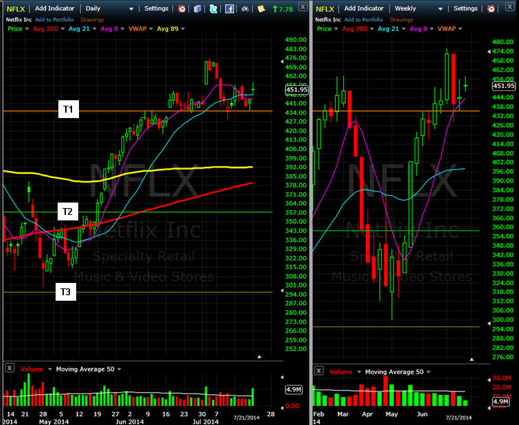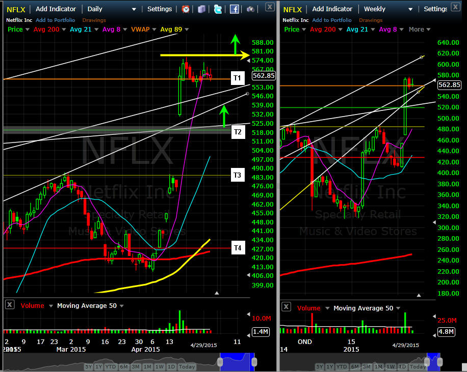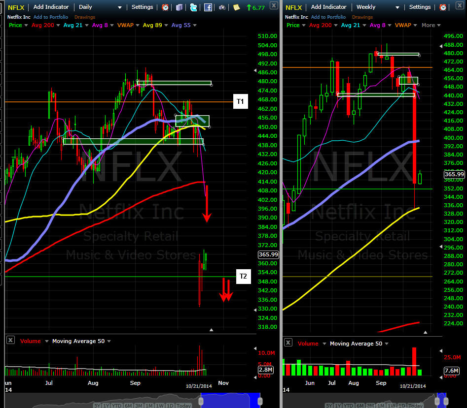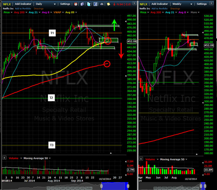 8/17/15 - No big news last week after the slight rally and NFLX fails to take out the SGB so if we get a move under it, I am shorting for only a day trade but keeping lotto calls in play at all times. Downside target is T2 and maybe T3, but that is where I would be a buyer.