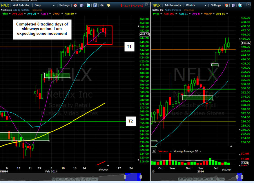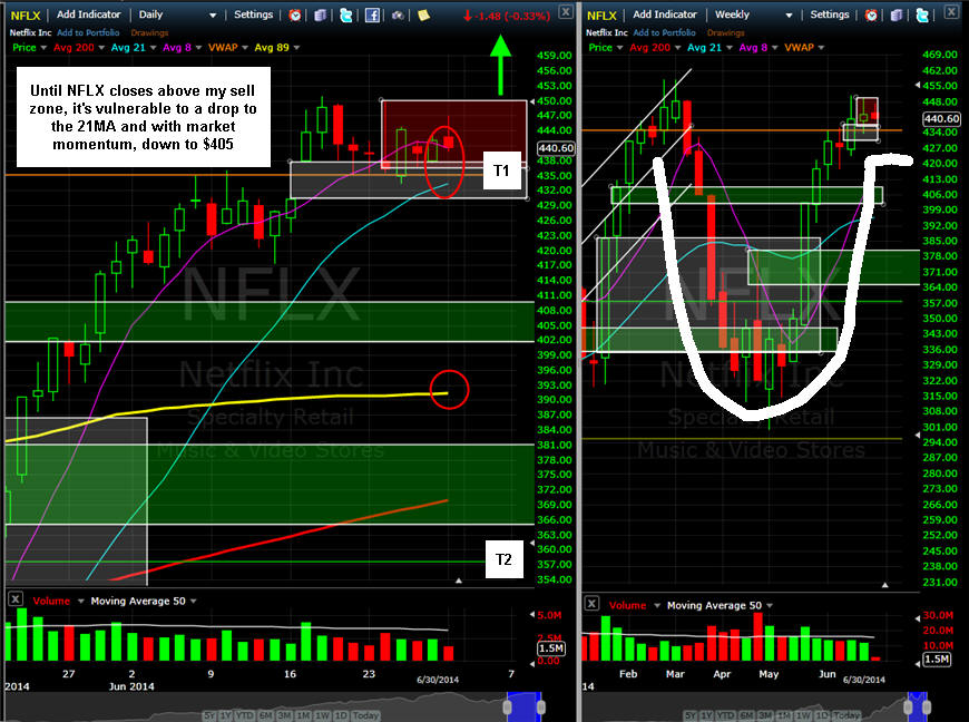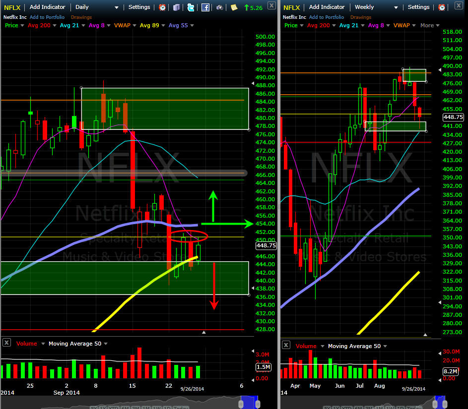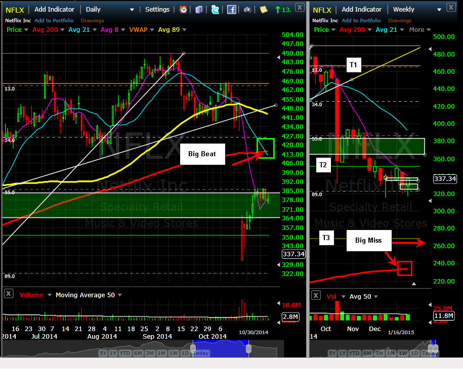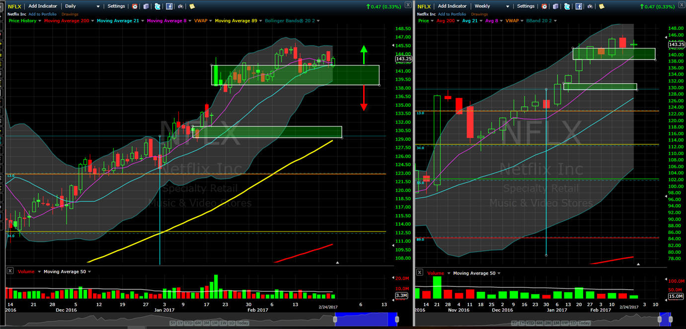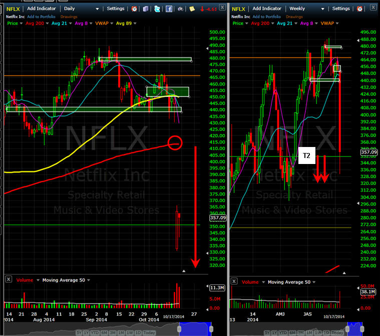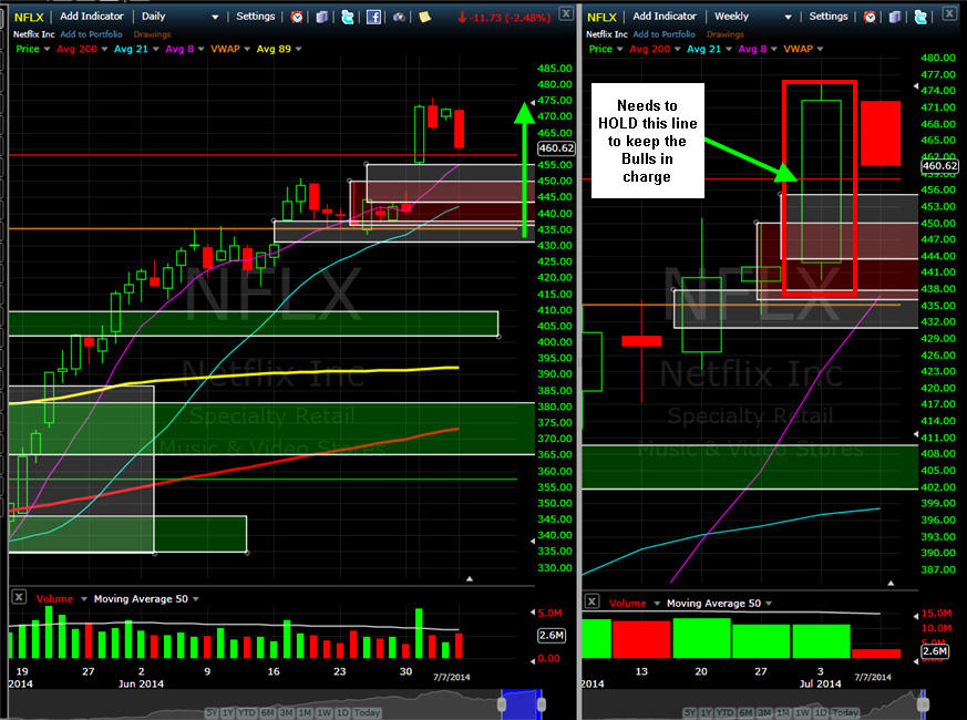 8/17/15 - No big news last week after the slight rally and NFLX fails to take out the SGB so if we get a move under it, I am shorting for only a day trade but keeping lotto calls in play at all times. Downside target is T2 and maybe T3, but that is where I would be a buyer.