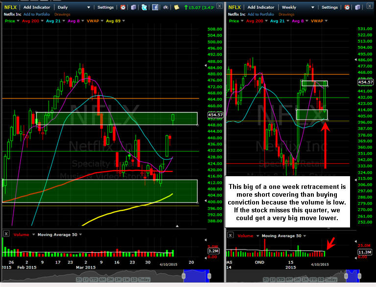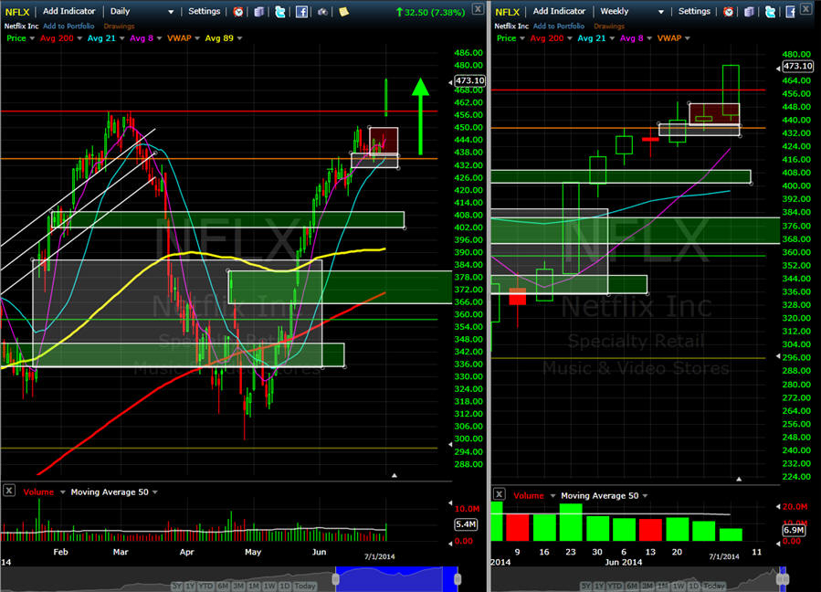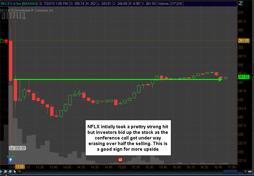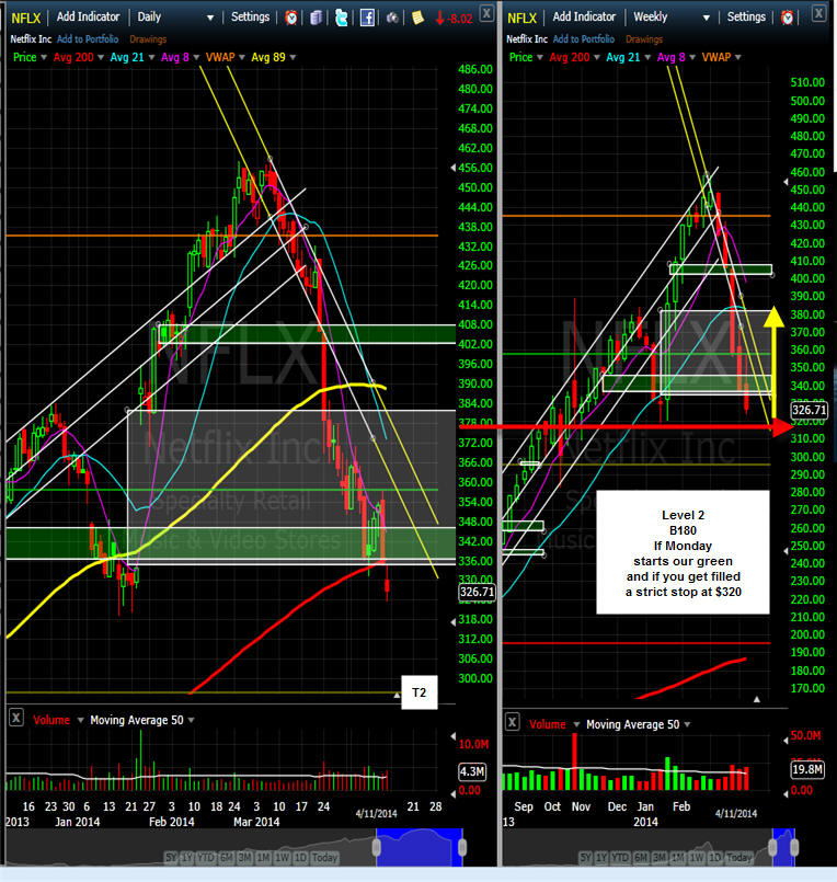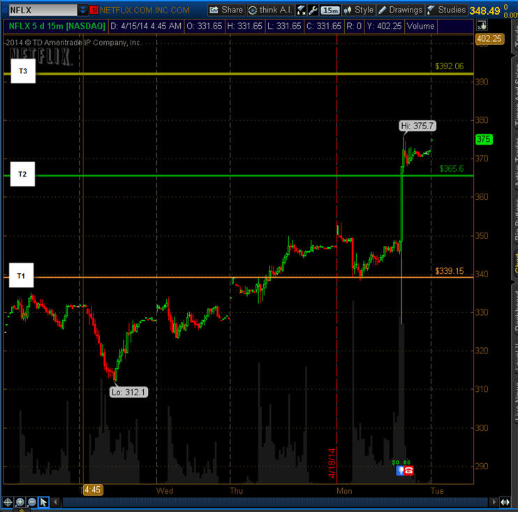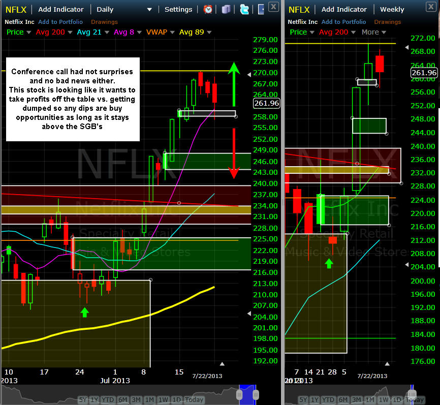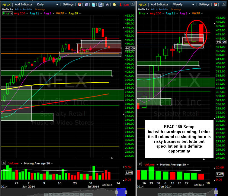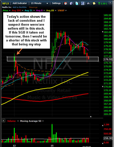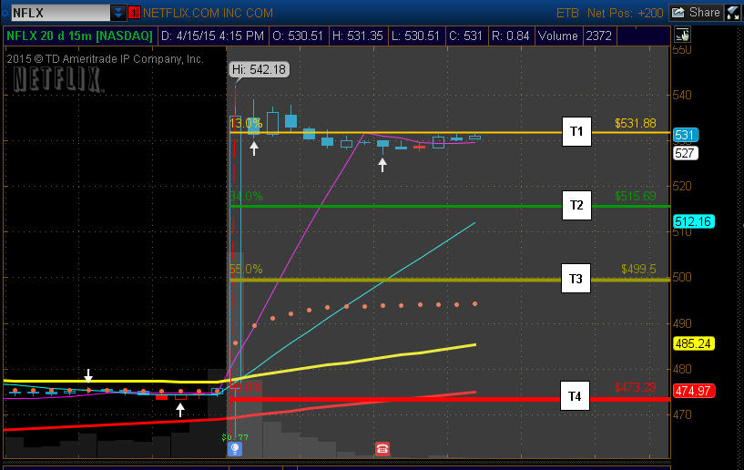 NFLX opened to a SGB and trickled down all day so now we have our pivot points in place going forward. We had some HUGE Lotto trade on NFLX, GOOGL and FB so can we get even MORE? I certainly expect to with this much momentum built into the earnings season so far.