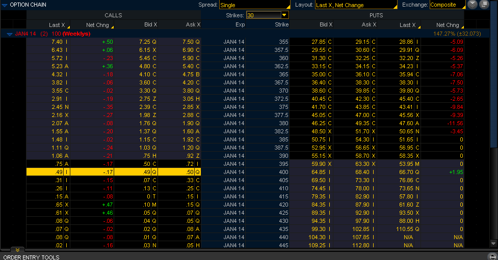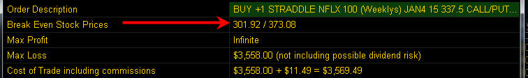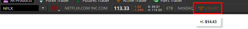 So if the MMM is accurate, then (based on the current price) they stand to be approximately $3.83 ITM; which means a max net gain of $1.52 after you take out what they paid. That is not a very good risk/reward trade if you ask me—we like to get LOTTO PAID and that is not looking like it will happen this time with NFLX.