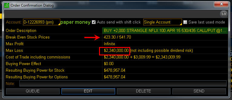 I am going to keep a running tab of OTM calls on NFLX and then trade the stock week to week like I always do.