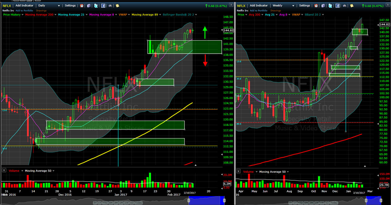 If NFLX gets it's running shoes laced up again, the race will be on for $200 - $220.00. Any pull back to $140 area is where you should start looking for OTM long calls.