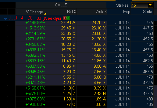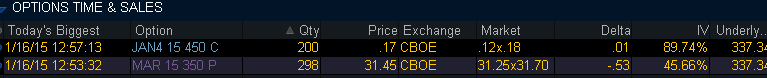 Whoever bought those 541- 103.93 calls invested a huge sum of money betting the stock will be trading (in pre split dollars) over $727.51 by Friday.