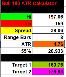 61.8 = $176 (20MA target 1) 50.0 = $168 38.2 = $160