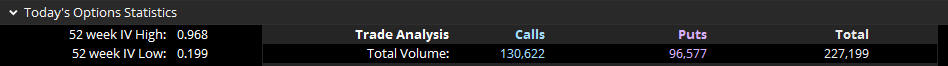 Puts are edging ahead of calls which still shows a lot of bullish intent because with the stock pulling back pretty hard this week there has not been that much of an increase in the Put/Call ratio.